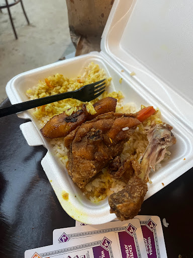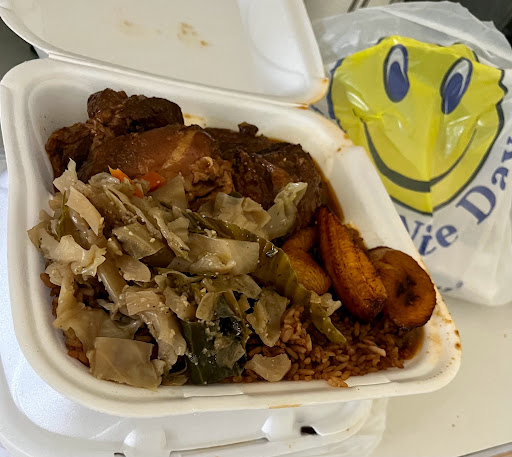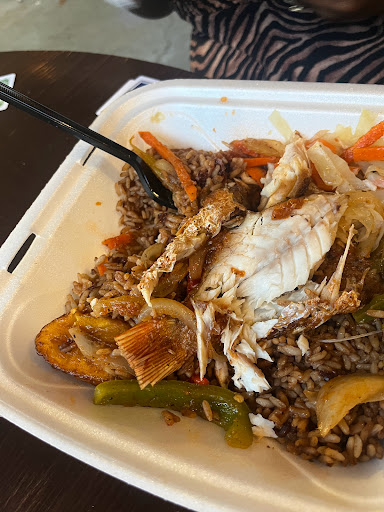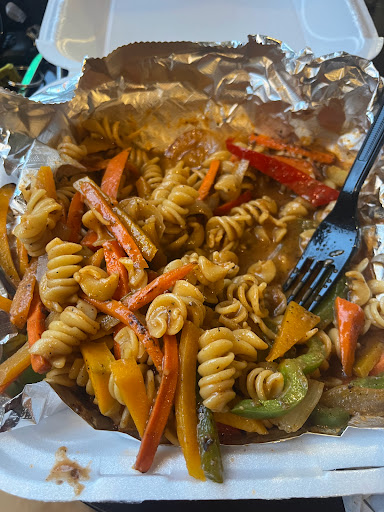 Jamaican-style rice stir fry with vibrant vegetables and savory seasonings.